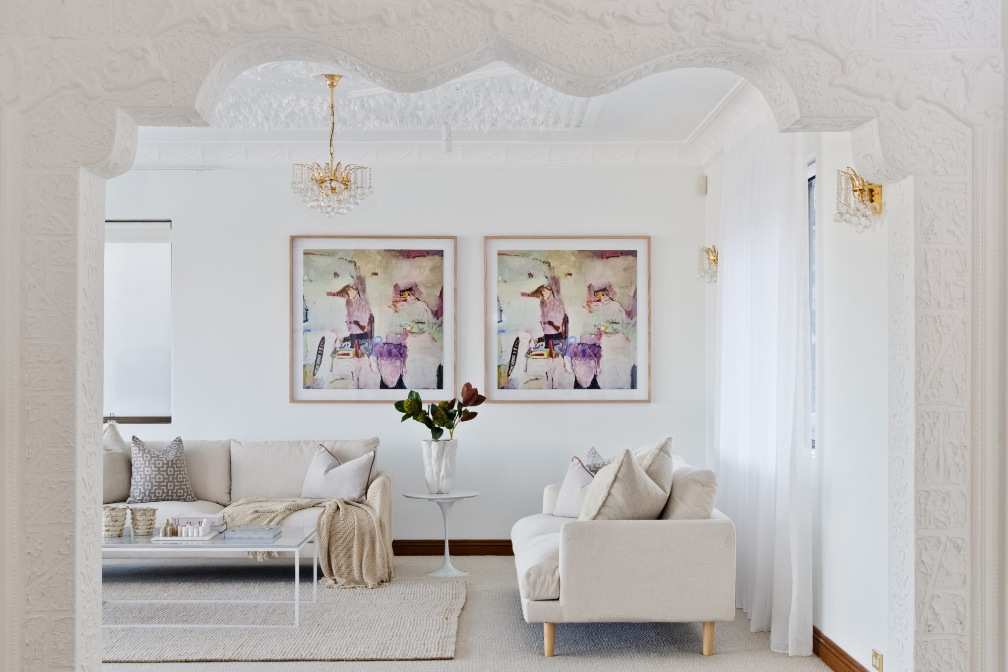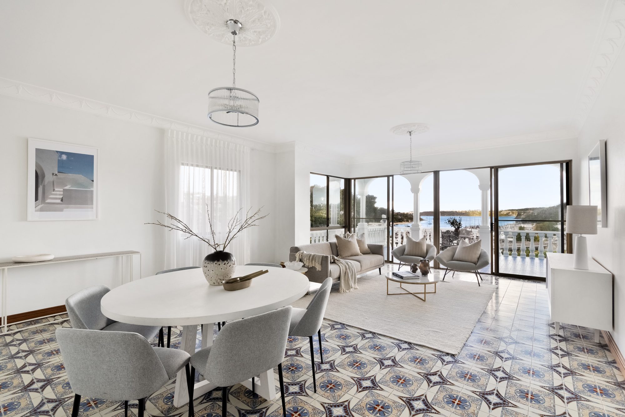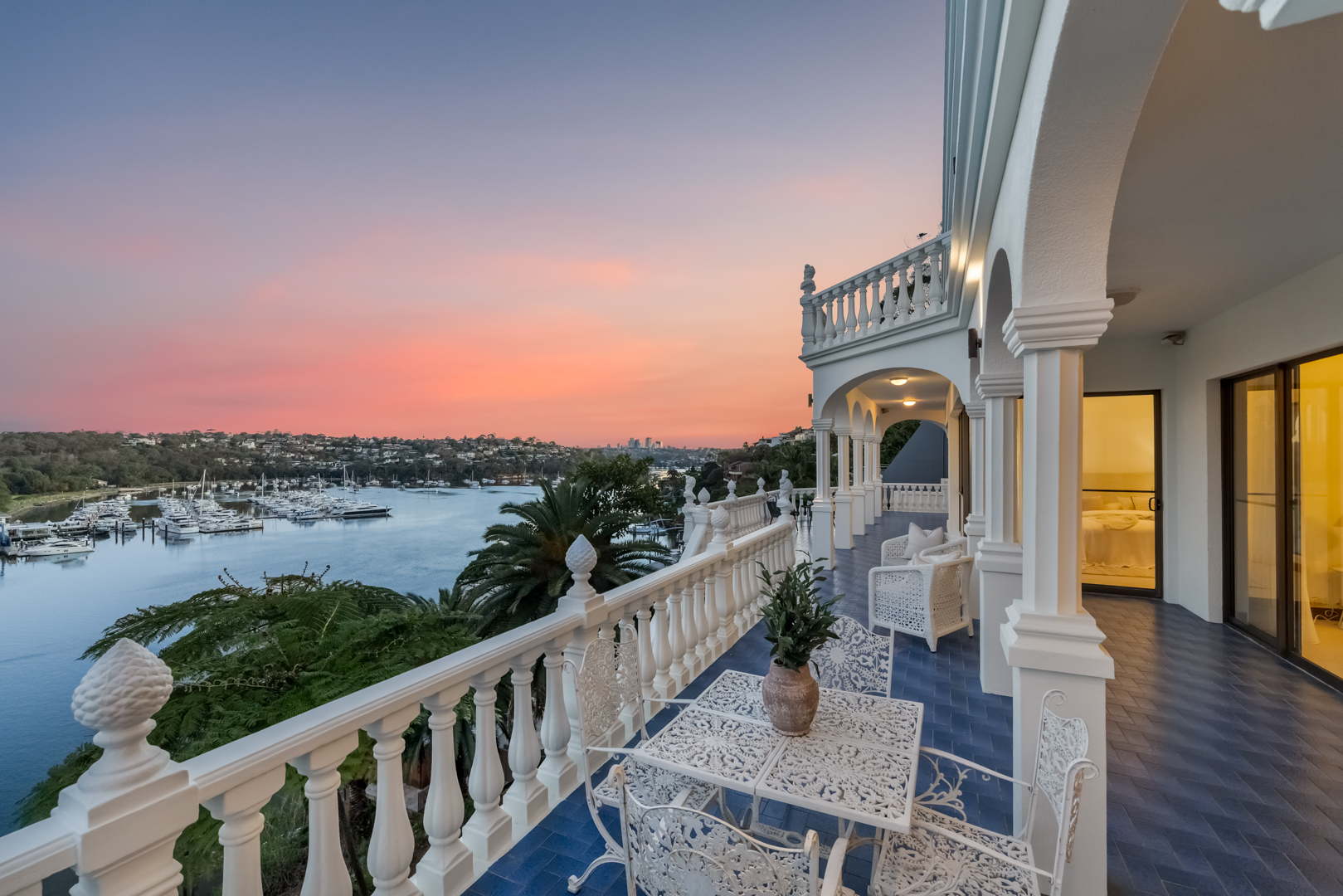 Two entertaining balconies with classic colonnades and arches