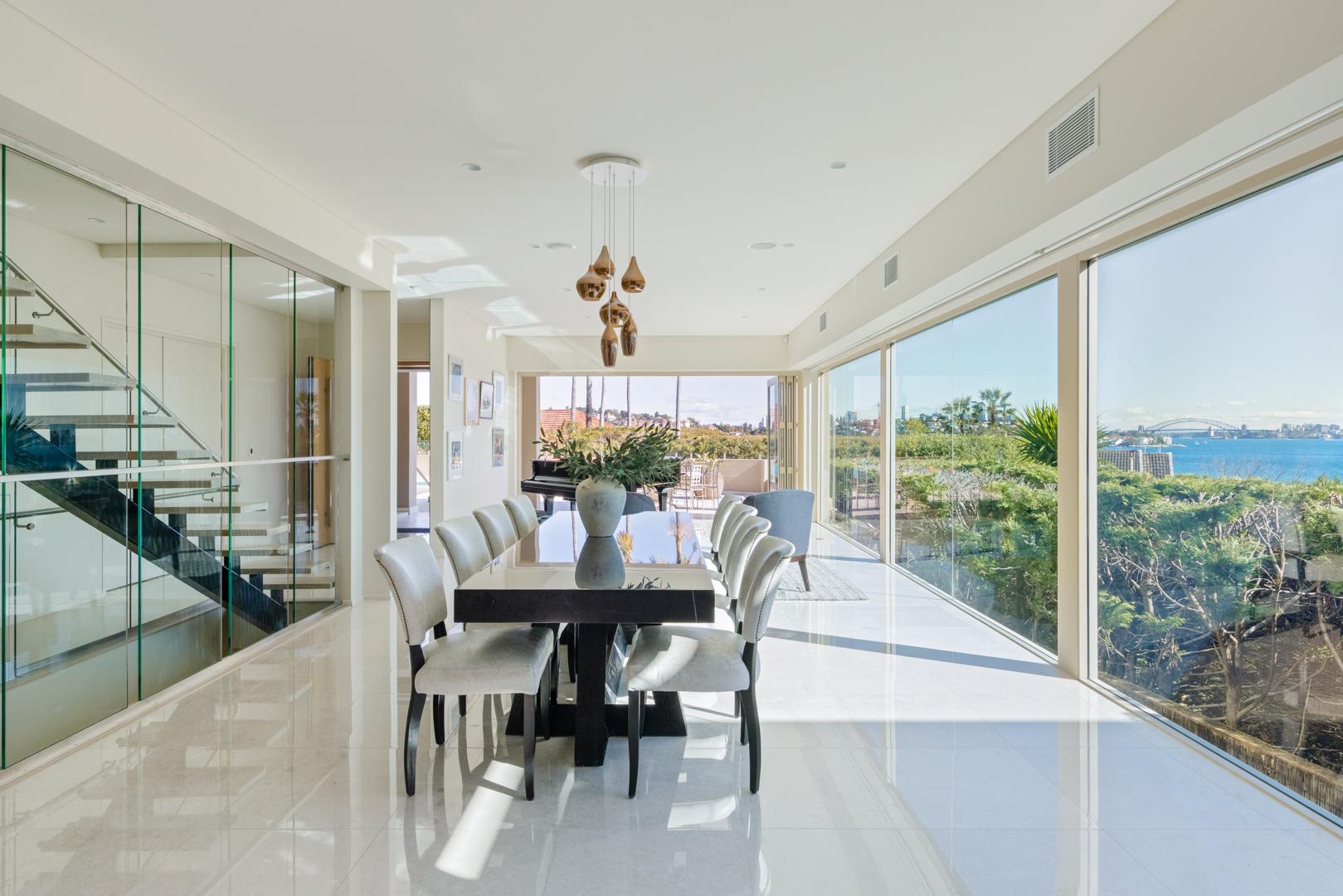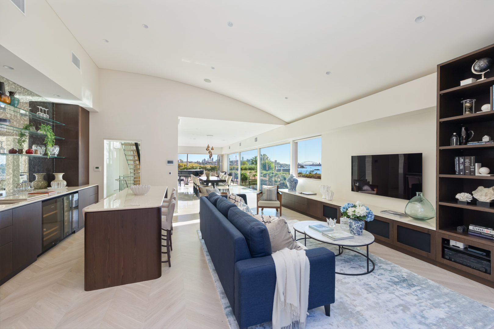 Expansive formal and casual living zones with panoramic harbour views