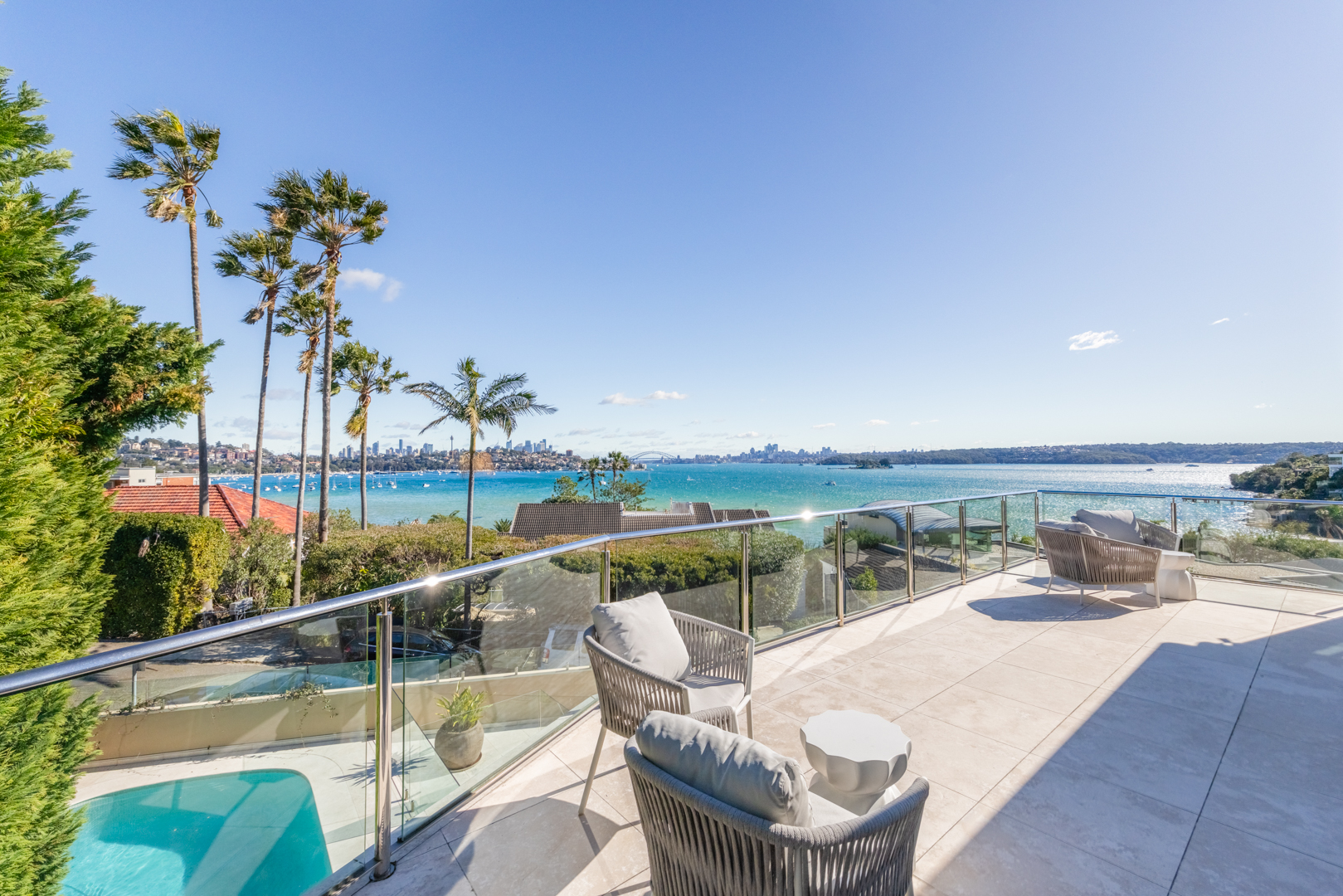 Sparkling swimming pool with spectacular Sydney Harbour backdrop