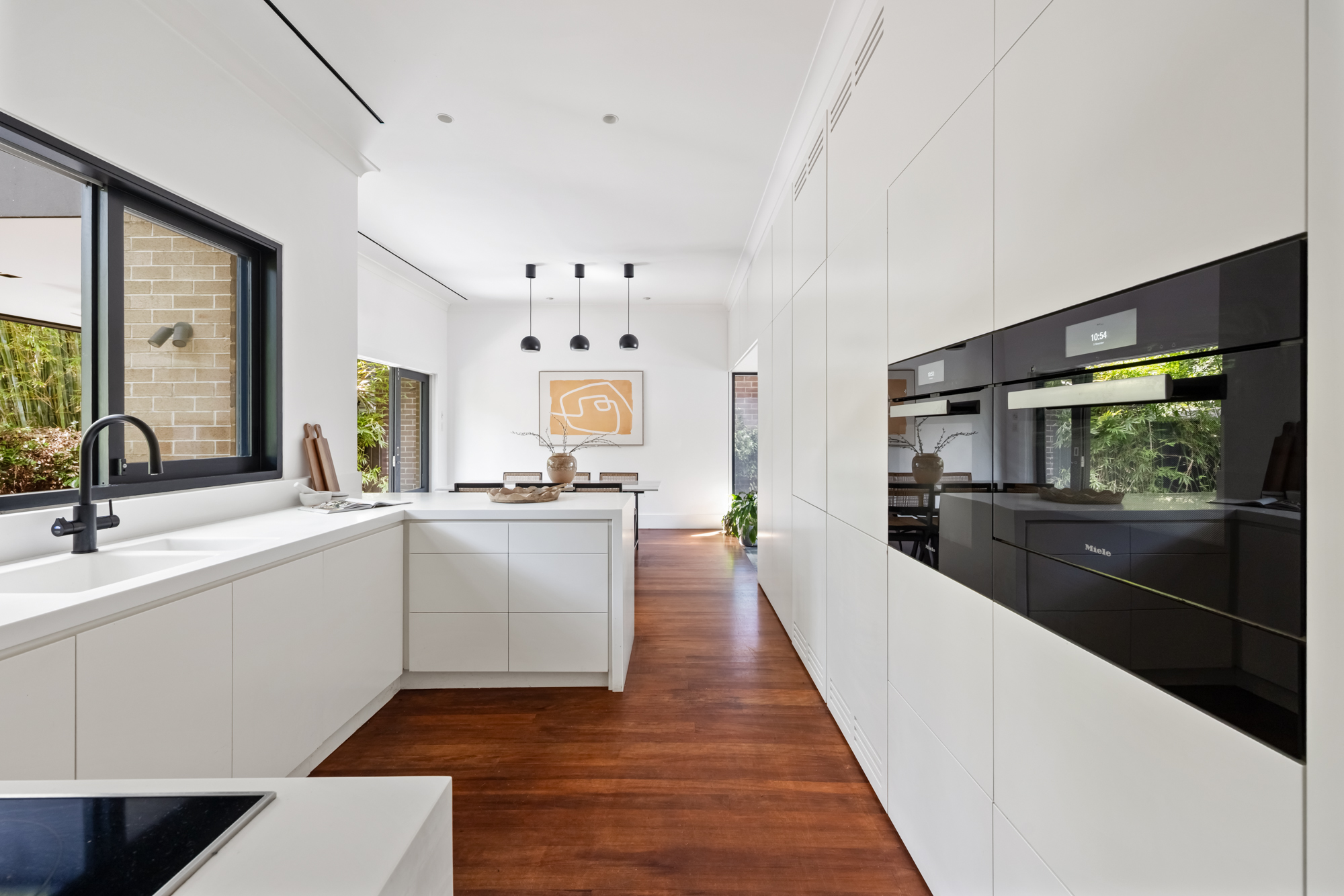 Minimalist integrated Corian induction kitchen, Miele appointments